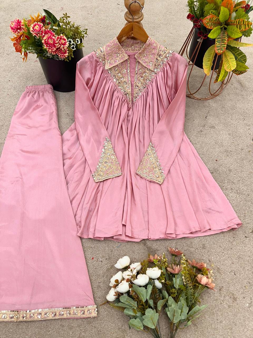 Plazzo: Heavy Chinon with embroidery & sequence work
