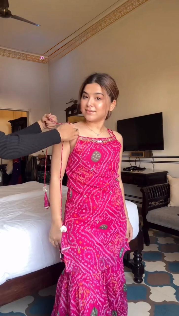 Top: Faux Georgette with digital print & real mirror work